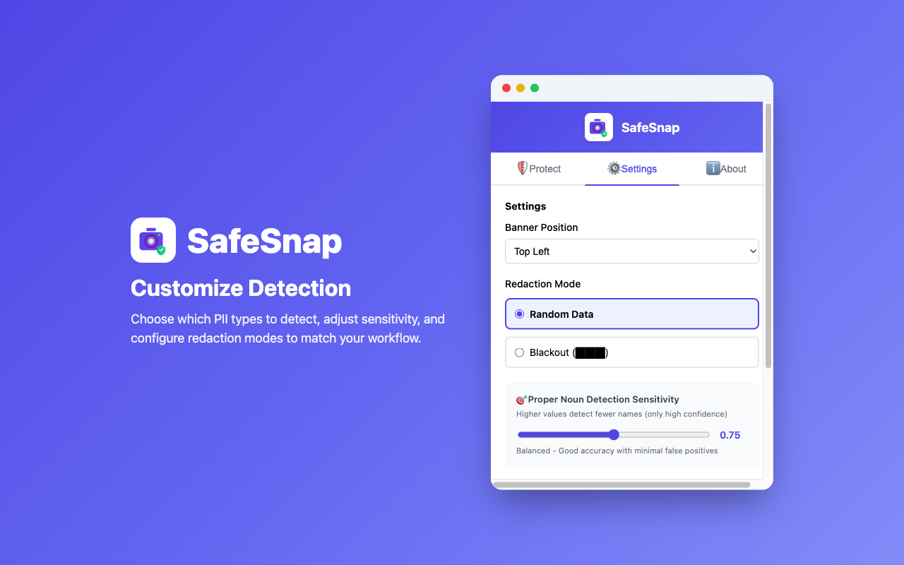 Privacy-first Chrome extension that automatically detects and protects personally identifiable information in screenshots.